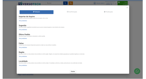 Veja os mais vendidos na região ou na cidade, itens em falta na última compra, comprados no último pedido ou sugestão baseada no histórico de compra.